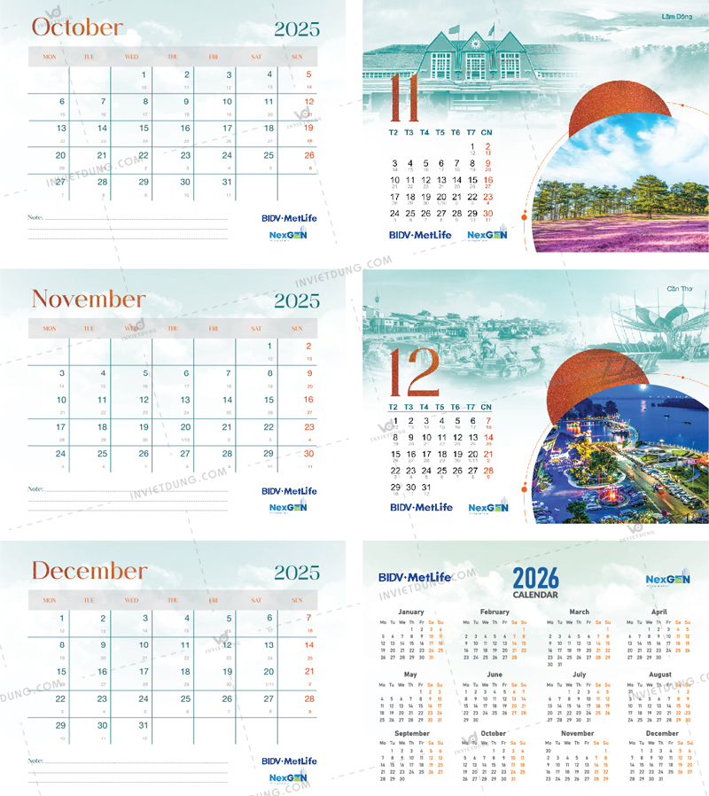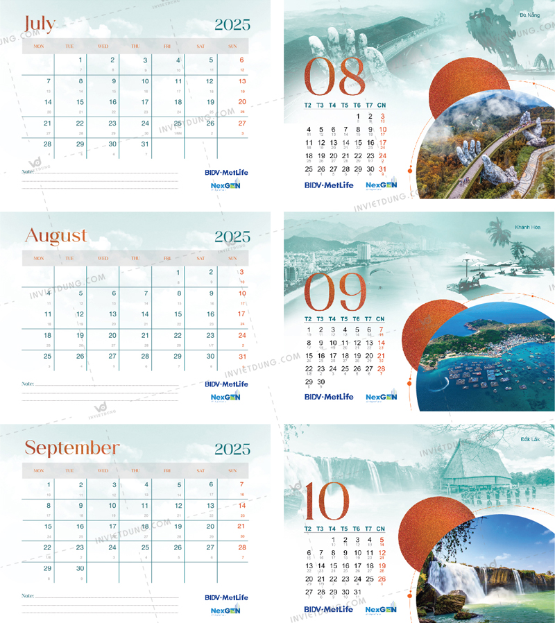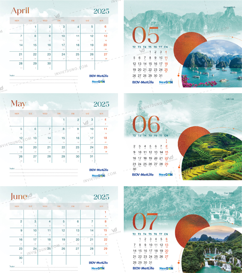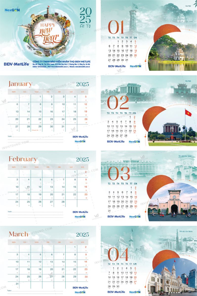 “Tinh tế, hiện đại và chuyên nghiệp” - đó chính là những lời nhận xét từ khách hàng BIDV Metlife khi nhận trên tay mẫu lịch được In Việt Dũng thiết kế và sản xuất. Lấy cảm hứng từ hình ảnh trái đất xoay tròn, In Việt Dũng muốn thế hiện tầm nhìn toàn cầu, sự kết nối bền vững và tinh thần hội nhập của thương hiệu bảo hiểm nhân thọ hàng đầu Việt Nam này.